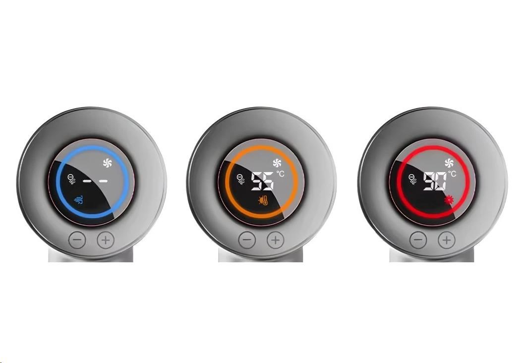 - Digitální displej – jasné a přehledné zobrazení teploty a režimu foukání