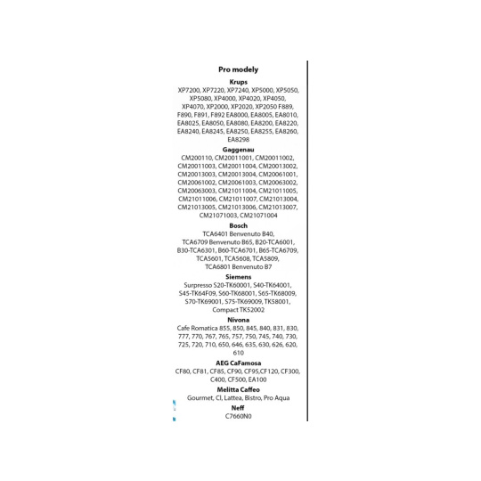 Kompatibilita: Krups, Bosch, Siemens, AEG, Gaggenau, Nivona, Melitta, Neff - viz.obrázek v příloze.