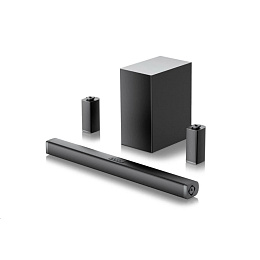 - Napájení: Soundbar DC adaptér 24V/2.5A*1, Subwoofer AC 100 - 240V~50/60Hz 1.5A, Prostorové reproduktory: Type-C pro nabíjení, jinak fungují bezdrátově