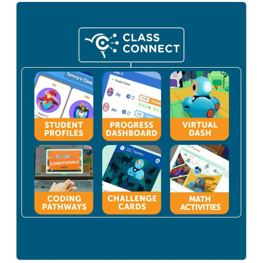 Wonder Pack obsahuje veškerý hardware a software, který potřebujete k tomu, abyste dětem ve třídách zpřístupnili programování! Toto balení obsahuje Sketch Kit, který z robota Dashe udělá kreslící nástroj. Součástí je také Launcher, Gripper Building Kit a dvojice LEGO konektorů – ideální způsob, jak získat kompletní sadu příslušenství! Součástí tohoto balení je také roční licence na Class Connect pro 2 studenty. Díky platformě Class Connect mají žáci k dispozici rozsáhlou zásobu lekcí, aktivit a hádanek, které mohou plnit v aplikaci Blockly a naučit se tak důležité dovednosti v oblasti programování a aplikovat je na reálné příběhové výzvy. Obsah balení: Dash robot Sketch Kit Launcher Gripper Building Kit Building Brick Connectors.