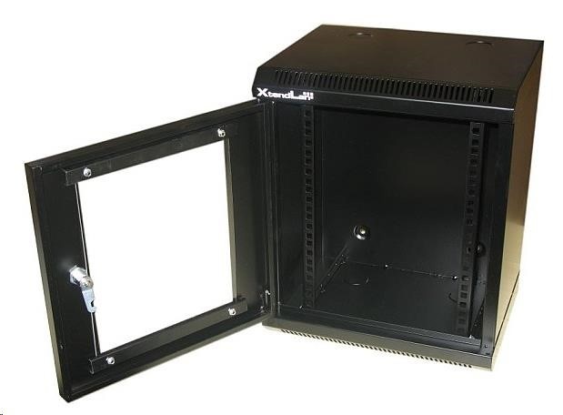XtendLan 10" nástěnný rozvaděč 12U 350x280, nosnost 50 kg, dveře z plexiskla, svařovaný, černý