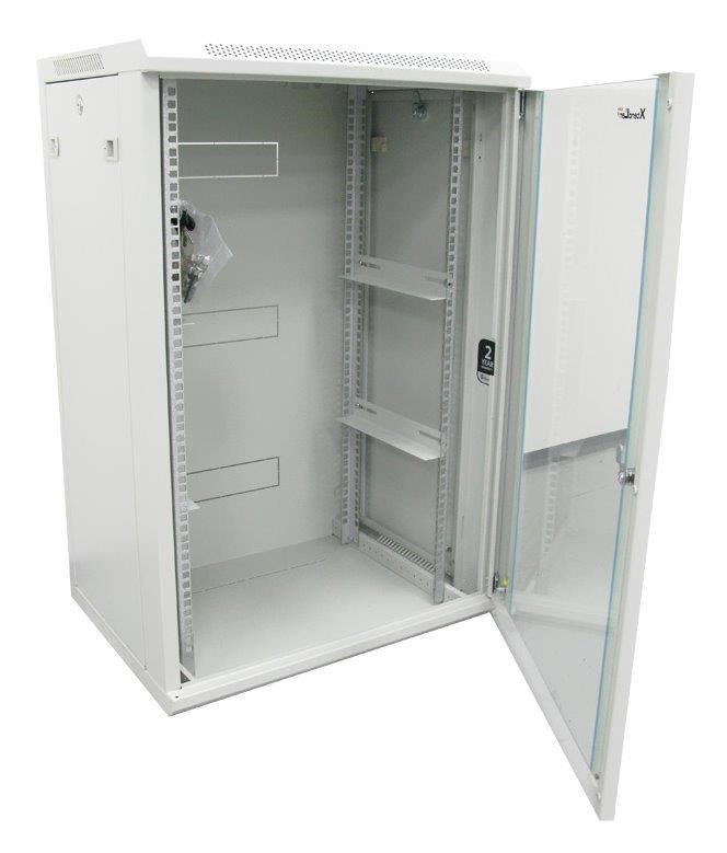 Univerzální jednodílné rozvaděče jsou určené pro montáž na zeď. Rozvaděče jsou výborně řemeslně zpracovány a mají elegantní vzhled.Jejich připevnění je snadné díky přibalenému patentovanému montážnímu panelu. Vyrobeny jsou z válcované oceli, nosné části jsou z oceli tloušťky 1,5 mm, ostatní z 1,2 mm ocelového plechu. Konstrukce dovoluje statickou zátěž 60 kg. Přední dveře jsou uzamykatelné. Boční panely jsou vybaveny západkami a jsou rukou odnímatelné. Je možné je vybavit zámkem, který se instaluje do připraveného otvoru. Dodává se s montážní sadou. Provedení: dveře - bezpečnostní kalené kouřové sklo, zaměnitelný směr otevírání, uzamykatelné zádní kryt - plný boční kryt - plný, snadno odnímatelný, možné vybavit zámkem horní kryt - perforovaný, s pozicemi pro dva ventilátory