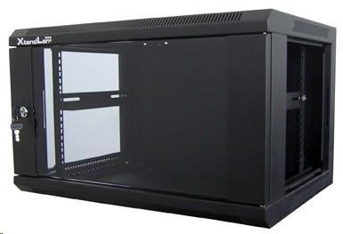 XtendLan 19" nástěnný rozvaděč 6U 600x450, nosnost 60 kg, skleněné kouřové dveře, rozložený, černý