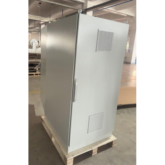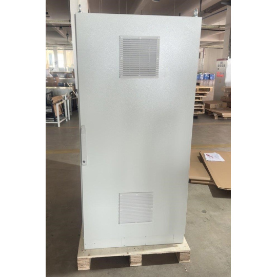 Rozvaděč pro instalaci datových a telekomunikačních zařízení, ventilace s termostatem, podstavec, šedý.