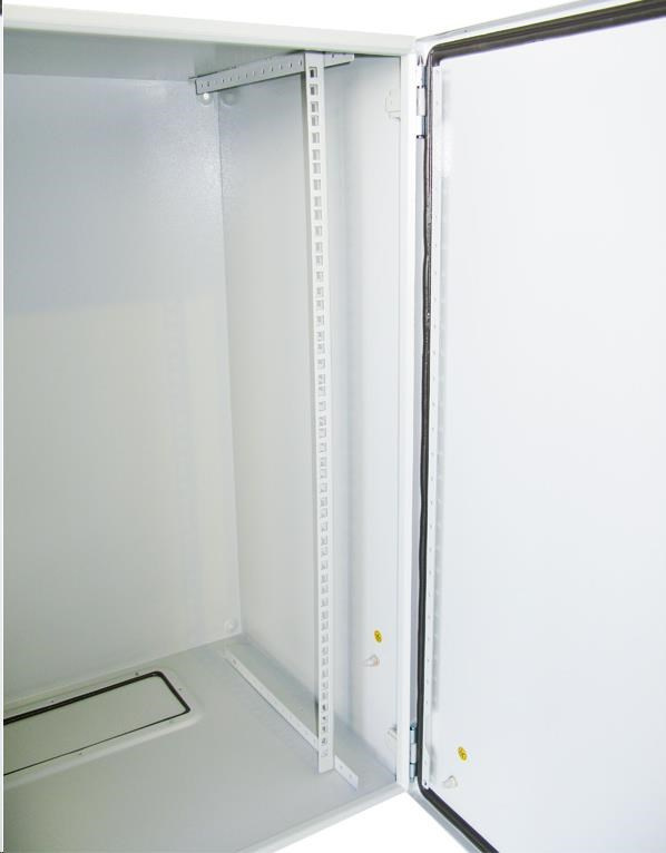 Venkovní nástěnný rozvaděč vyrobený z válcované oceli o tloušťce 1,5 mm.Třívrstvá povrchová úprava. Provedení: dveře - plné, otevíratelné o 110°, 3-bodový zámek, zaměnitelný směr otevírání, těsnění z pěnového polyuretanu zádní kryt - plný boční kryt - plný horní kryt - plný