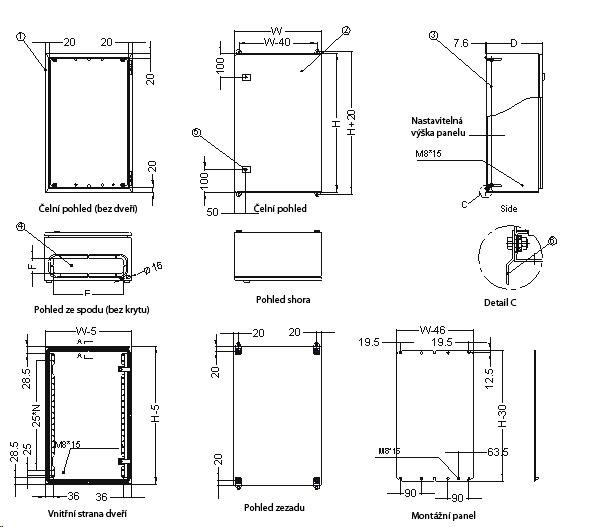 • tloušťka montážního panelu 2,5mm, válcovaná ocel