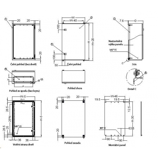 - tloušťka montážního panelu 2,5mm, válcovaná ocel