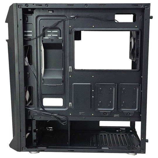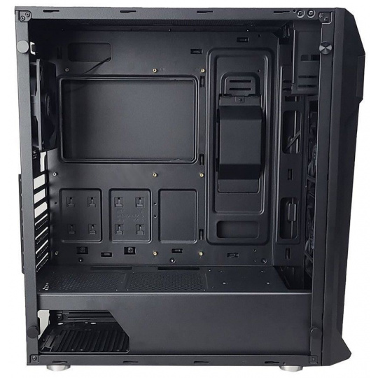 Kvalitní počítačová skříň formátu Middle Tower nabízí tři 2,5" pozice pro SSD disky a dvě 3,5" pozice pro pevné disky. Předinstalovány jsou tři 120 mm ventilátory. Na horním panelu se nachází dva porty USB 3.0, jeden port USB 2.0, sluchátkový výstup a audio vstup pro mikrofon. Ve skříni je dostatek prostoru pro chladič CPU do výšky až 163 mm a grafickou kartu o délce až 385 mm. Důmyslné řešení umožňuje pohodlné umístění až 280 mm dlouhého výměníku vodního chlazení na horní straně. Skříň je vybavena průhlednou bočnicí. Potěší také přítomnost prachových filtrů. Skříň je dodávána bez zdroje.